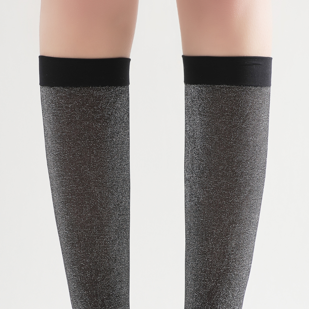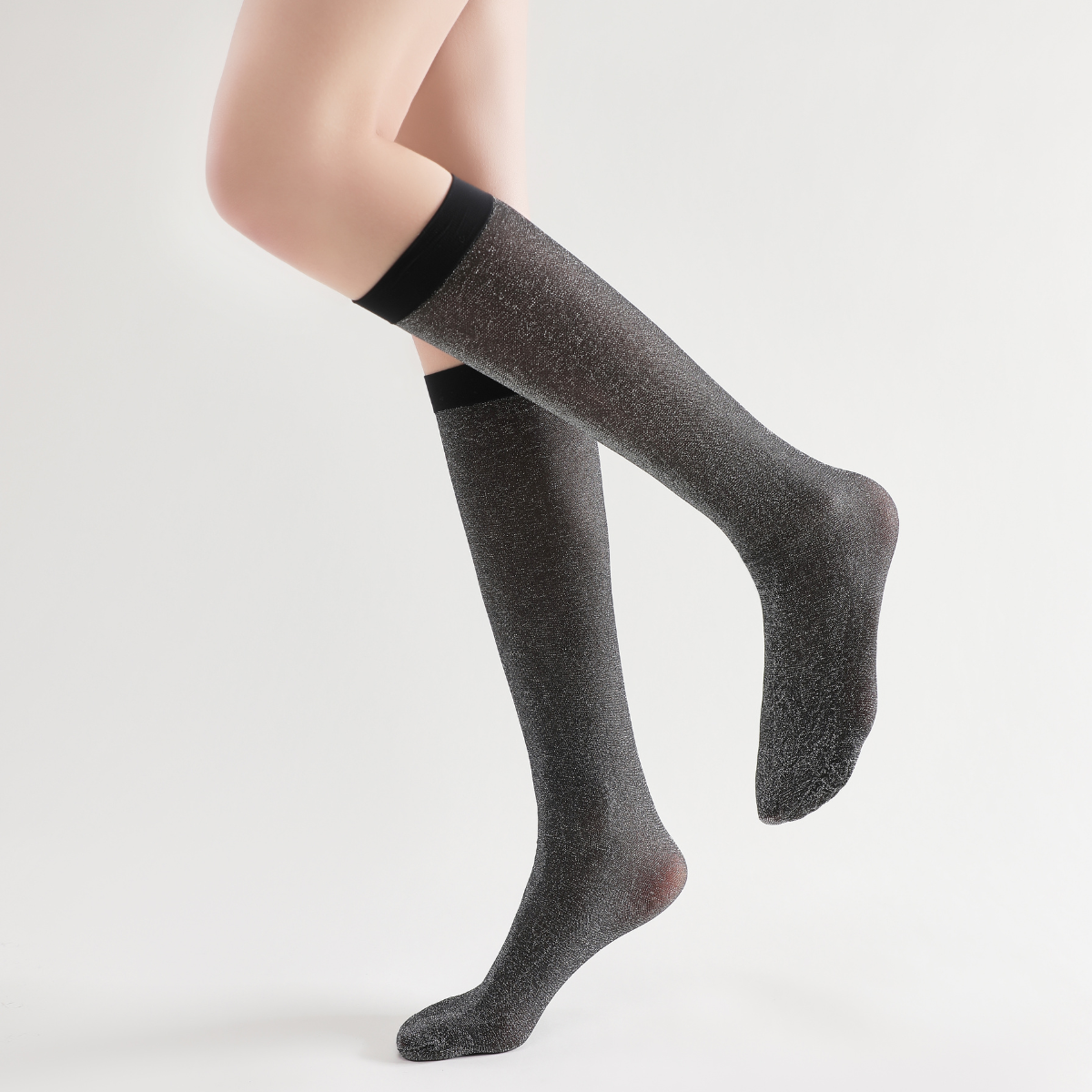 Cue the sparkle, babe! These Mia metallic shimmer socks bring shimmer and attitude. With just enough glitz to turn heads (and maybe break a few necks), they’re soft, stretchy, and topped with a no-slip band—because who has time for wardrobe malfunctions? Woven with metallic threads for that twinkle-twinkle effect, they’re ready to slay with heels, boots, or your go-to kicks. Bottom line? Your legs = the moment.