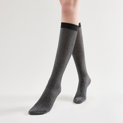 Cue the sparkle, babe! These Mia metallic shimmer socks bring shimmer and attitude. With just enough glitz to turn heads (and maybe break a few necks), they’re soft, stretchy, and topped with a no-slip band—because who has time for wardrobe malfunctions? Woven with metallic threads for that twinkle-twinkle effect, they’re ready to slay with heels, boots, or your go-to kicks. Bottom line? Your legs = the moment.