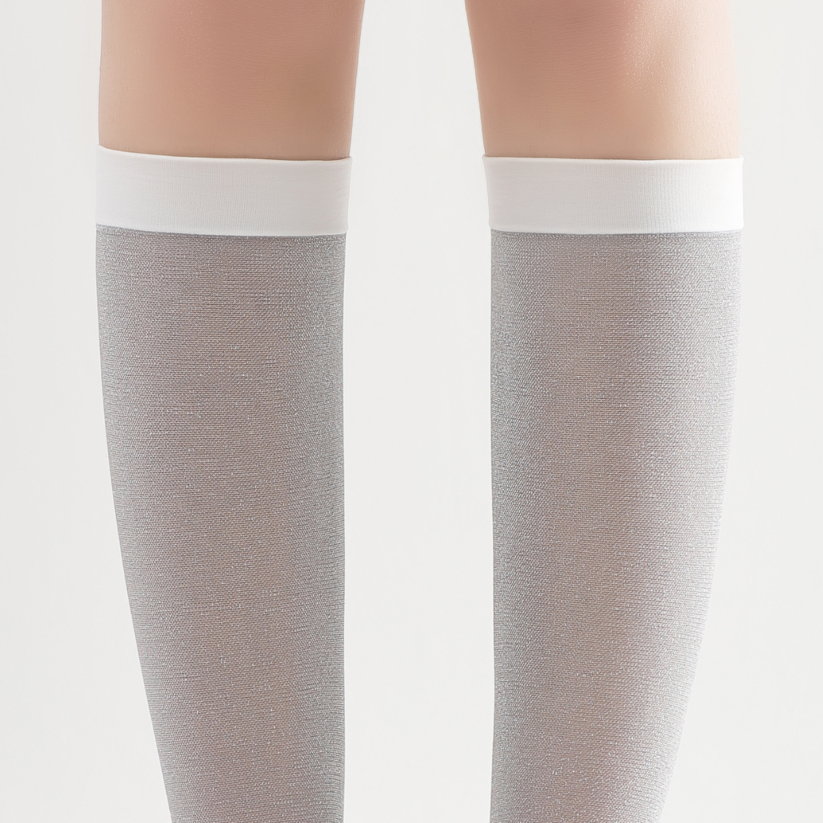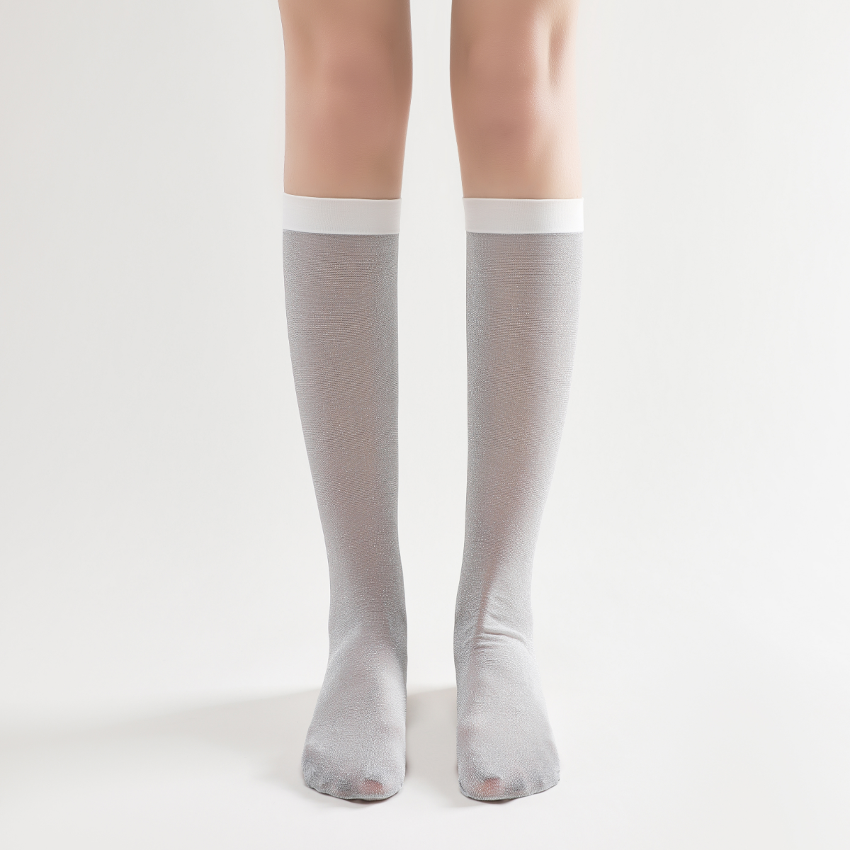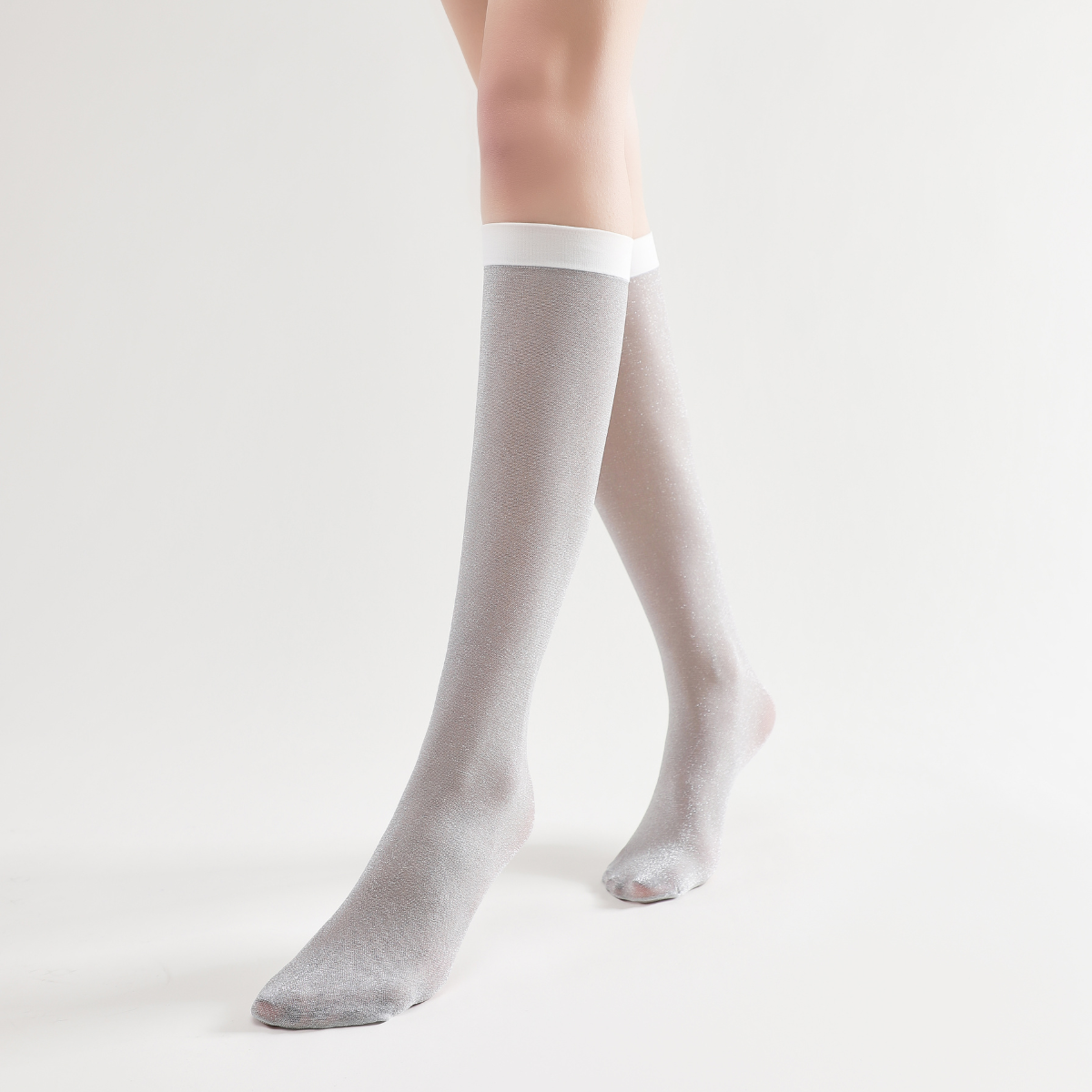 Mia Metallic Shimmer Semi-Sheer Mid-High Sock | Silver