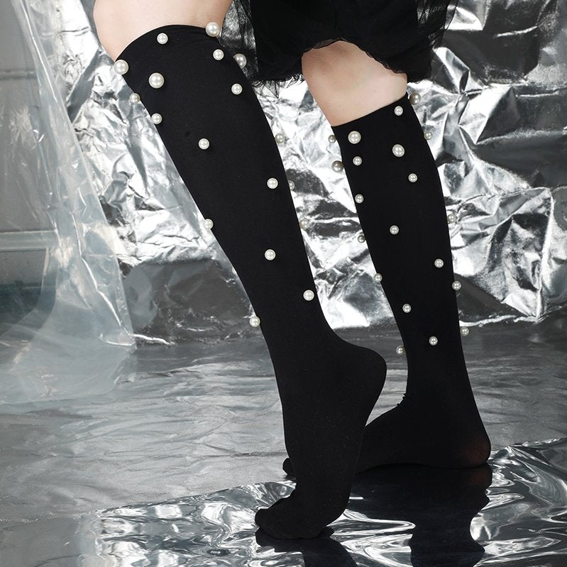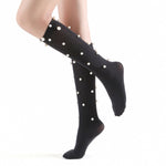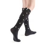 Naomi Pearl Stud Embellished Knee-High Sock | Black