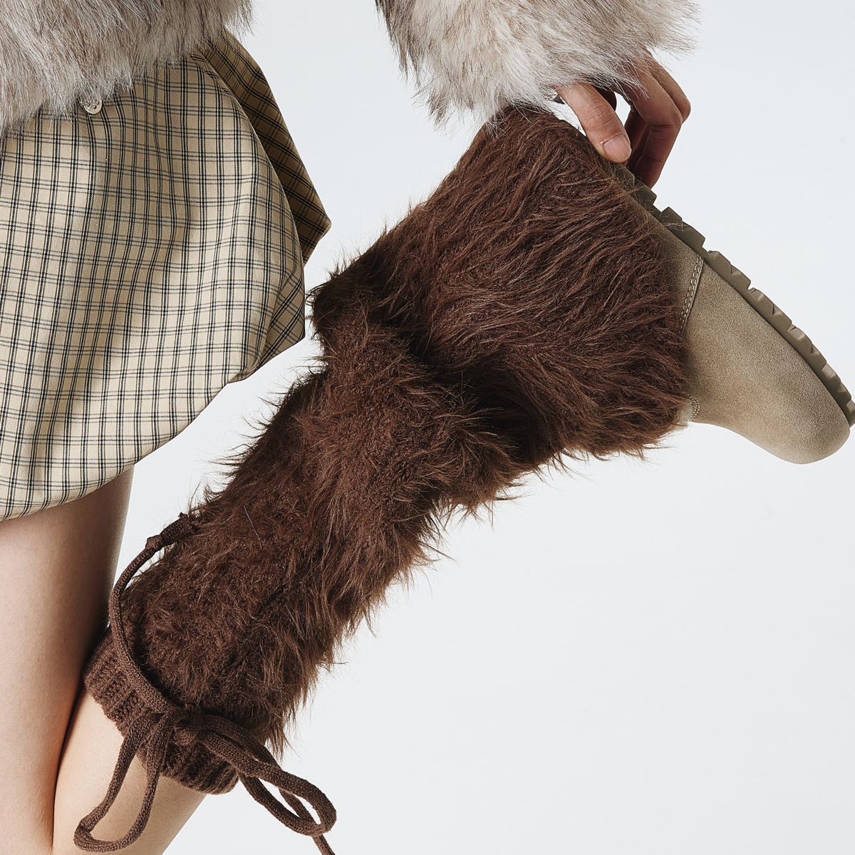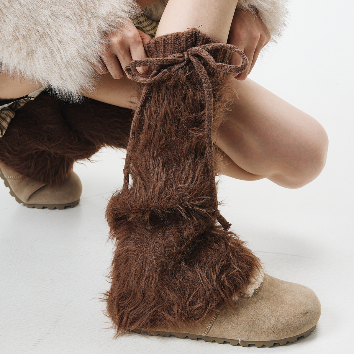 Bring that nostalgic Y2K energy to your everyday look with our Britney faux fur leg warmers. These plush boot accessories feature ultra-soft faux fur construction paired with a flexible rib-knit cuff that hugs your legs just right. Slip them on in seconds, adjust the cute tie closures for the perfect fit, and instantly transform your outfit—whether you're pairing them with boots, sneakers, platforms, mini skirts, oversized tees, or anything in between. Perfect for winter adventures, music festivals, photo shoots, or just those days when you want to feel like the coolest version of yourself. Available in four gorgeous shades: sleek black, rich brown, dreamy gray, and creamy ivory. These fuzzy warmers are your ticket to effortless, cozy-cool style that turns every outing into a fashion moment.