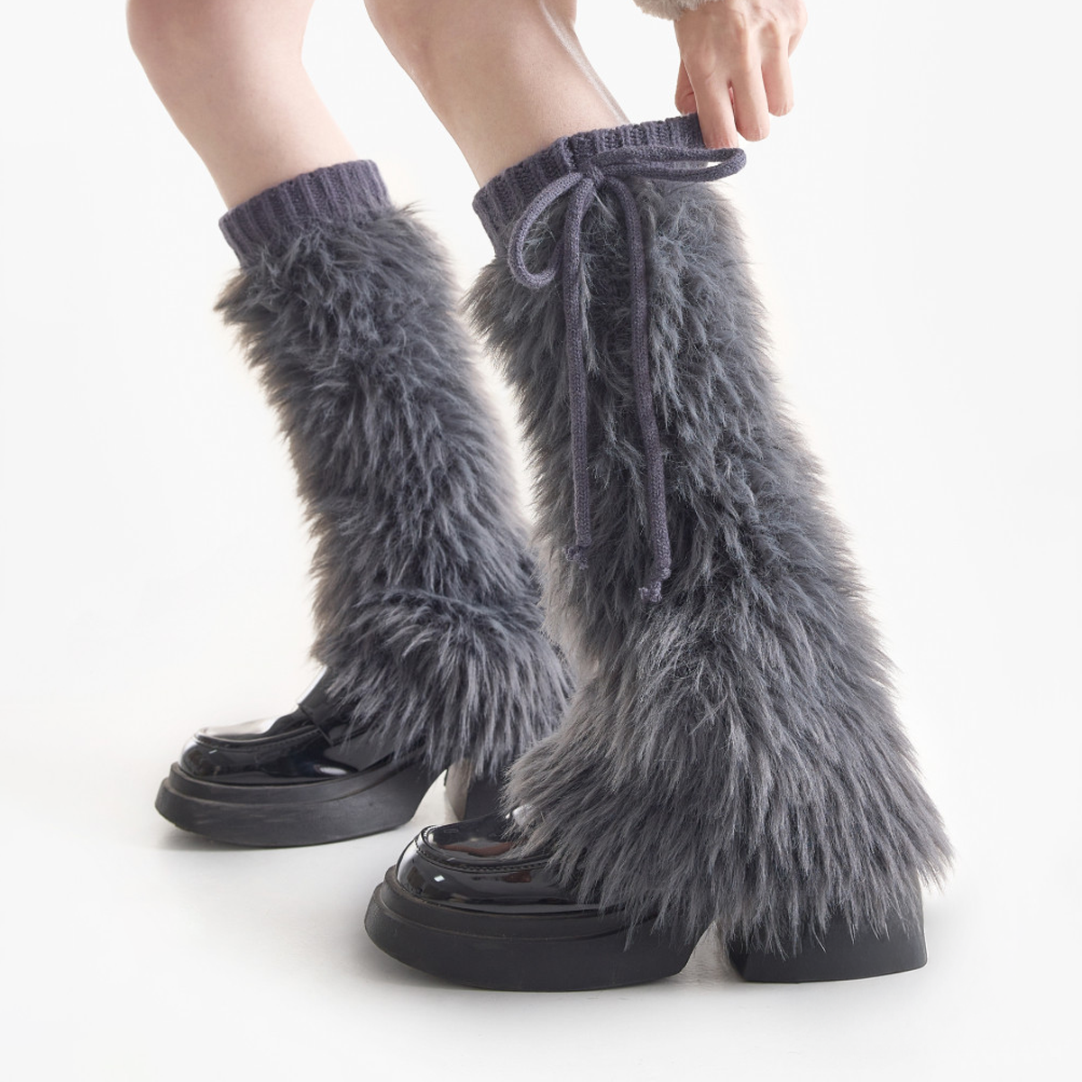 Britney Y2K Faux Fur Leg Warmers | Grey