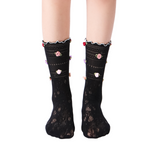 Rev up your style with these 3D rose buds socks! These semi-sheer nylon socks rock a crochet-style lace pattern and can be rocked pulled up to mid-calf or slouched. Don't overlook the details - hand-sewn rose buds add a touch of adventure to every step. With a stretchy spandex cuff to ensure a snug fit, these socks are a must-have for any daring fashion enthusiast looking to make a statement. Don't settle for just smelling the roses, let your style bloom with these one-of-a-kind socks!