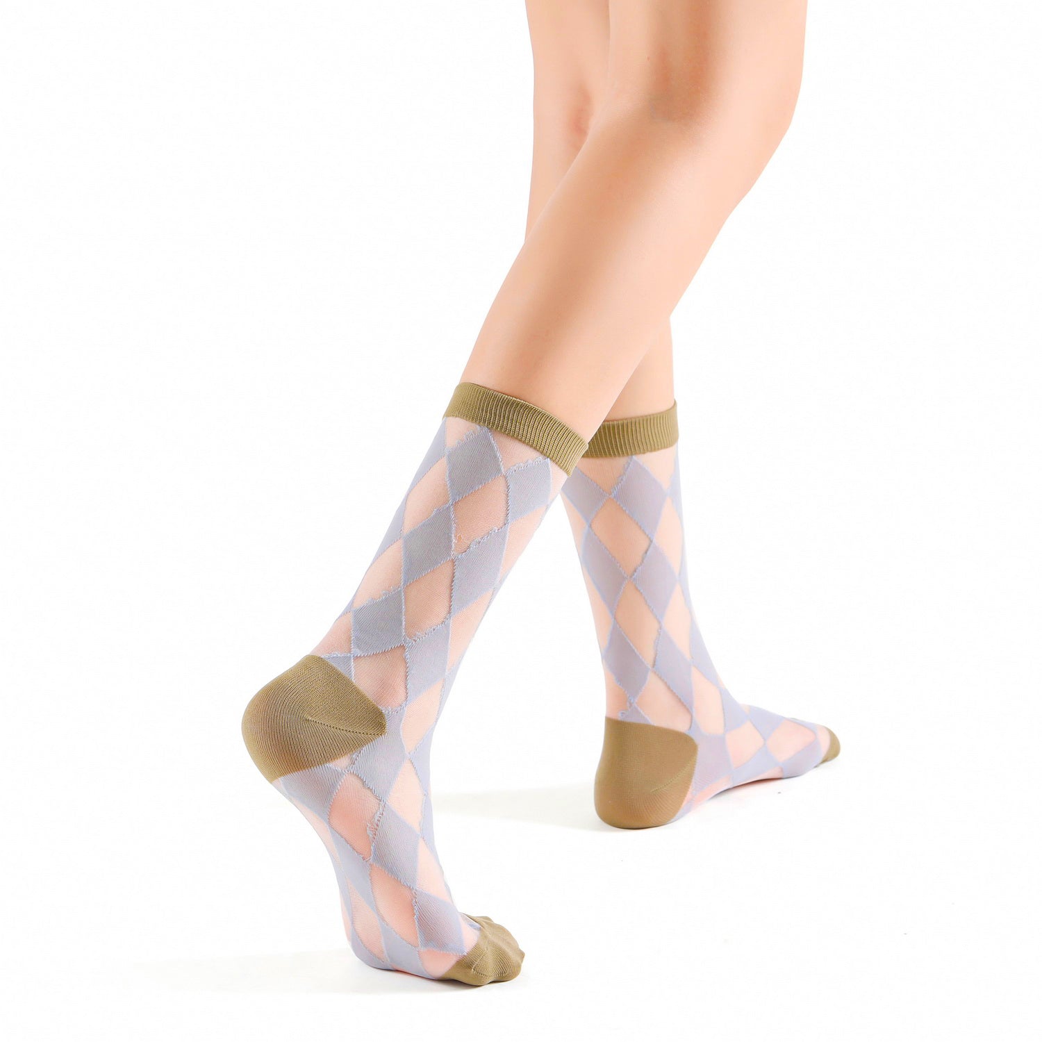 Cleo Argyle Sheer Crew Sock | Olive/Blue
