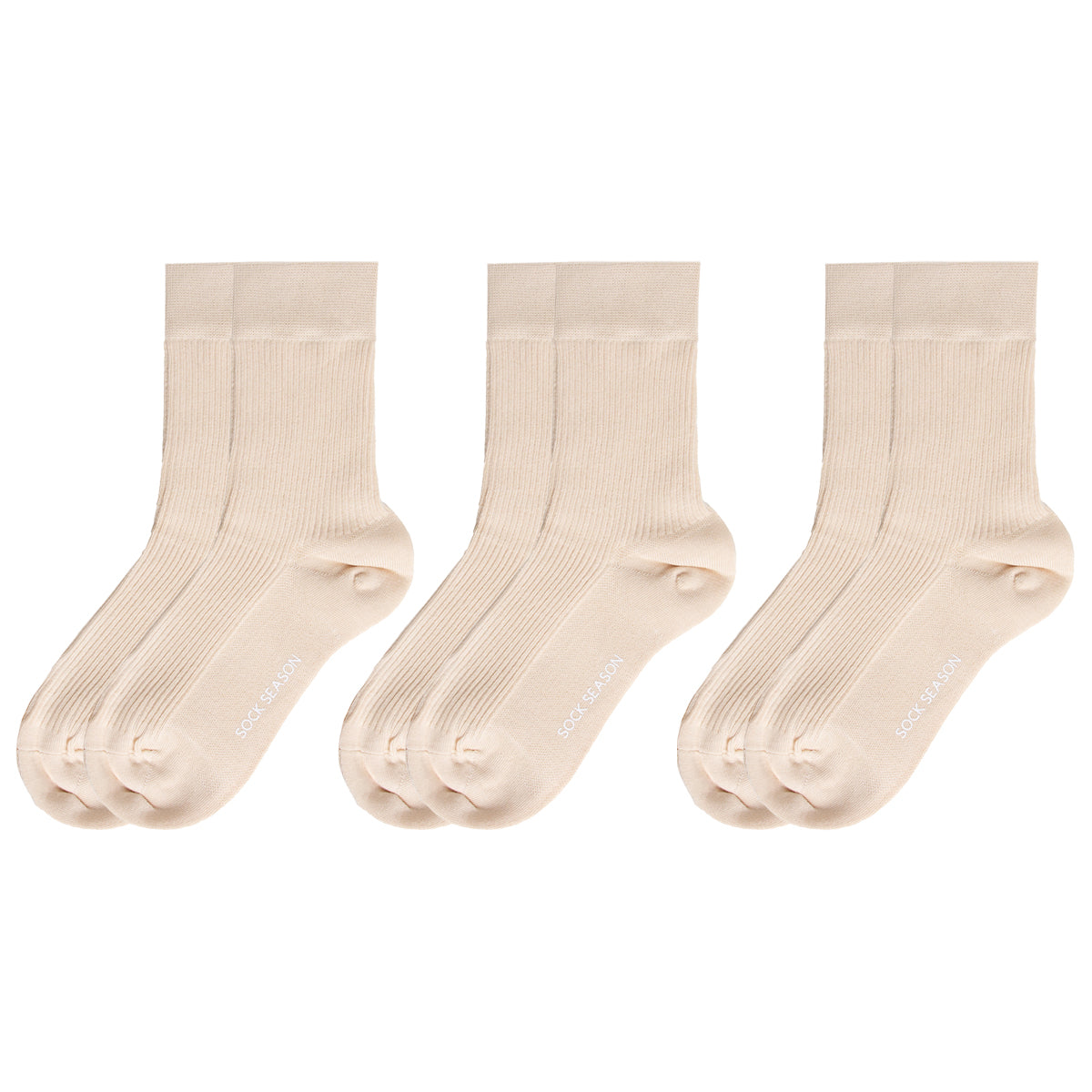 Ash Essential Ribbed Crew Sock 3-Pack | Beige