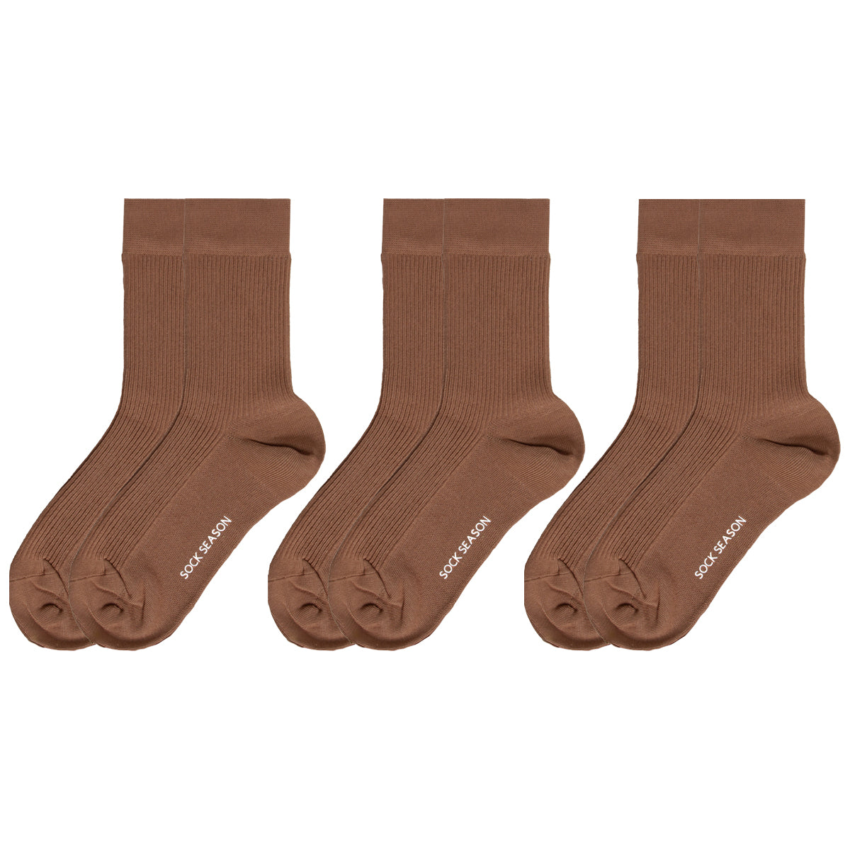 Ash Essential Ribbed Crew Sock 3-Pack | Mocha