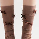 Step into a world of whimsy with the Gabriella 3D Bow Ribbon Appliqué Lace Crew Socks—a dreamy blend of girly charm and effortless coquette style! These sheer lace socks feature delicate 3D bows and intricate ribbon appliqués all over, adding a playful yet sophisticated touch to any outfit. Designed in a slouchy, relaxed fit, they can be worn scrunched down for a laid-back vibe or pulled up for a polished look. Perfectly pairing with Mary Janes, ballet flats, or sneakers, they bring a fashion-forward twist to any wardrobe. Available in gray, mocha, white, and black, these socks are a must-have for anyone who loves a little (or a lot of) extra in their style—because life’s too short for boring socks! 🎀✨