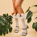 Destiny Feather Trim Lace Crew Sock | White - Sock Season